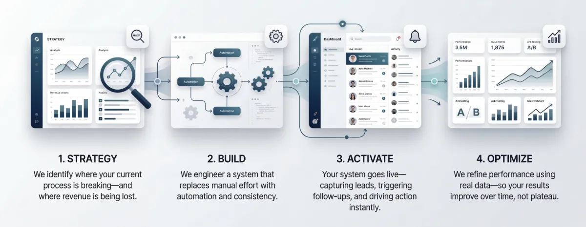 At GenCore Marketing, we design automation systems that operate 24/7—capturing, nurturing, and converting leads without adding more work to your plate.